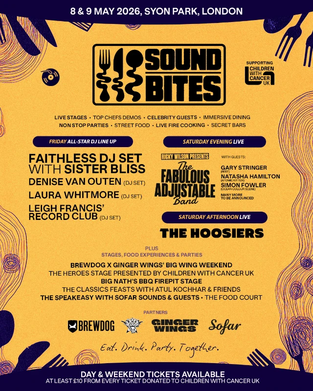 At Sound Bites: FESTIVAL, Syon Park, at least £10 from every ticket sold will be donated directly to Children with Cancer UK.